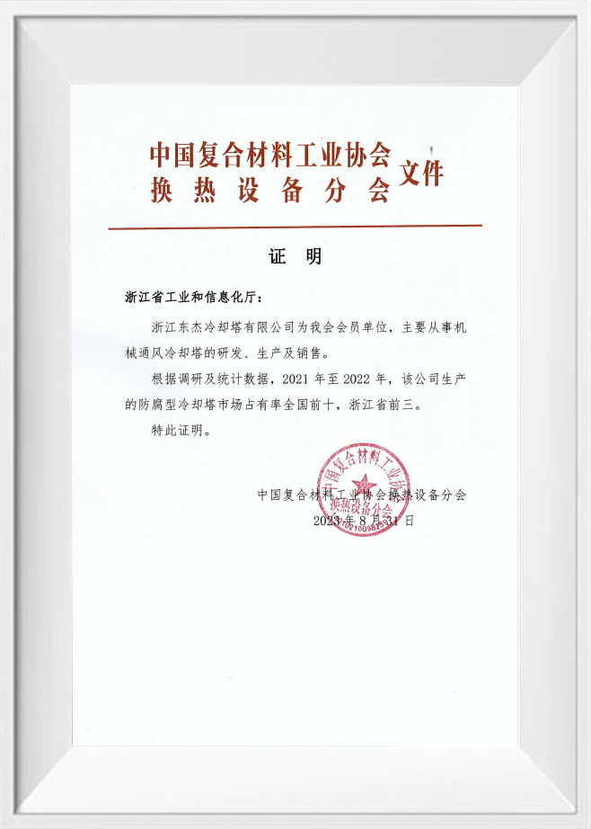 CCIA中国复合材料工业协会 换热设备分会会员单位证书